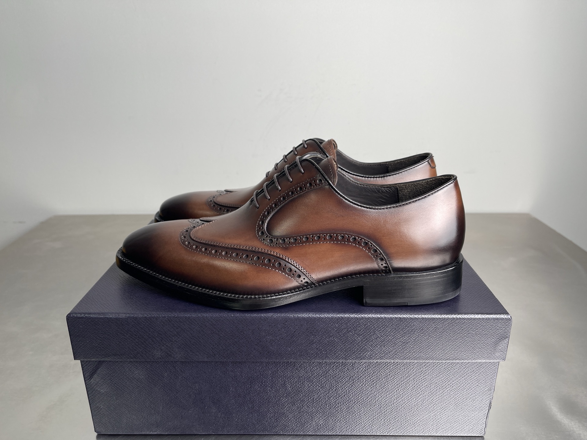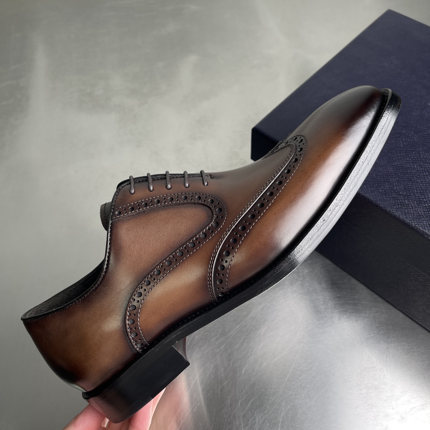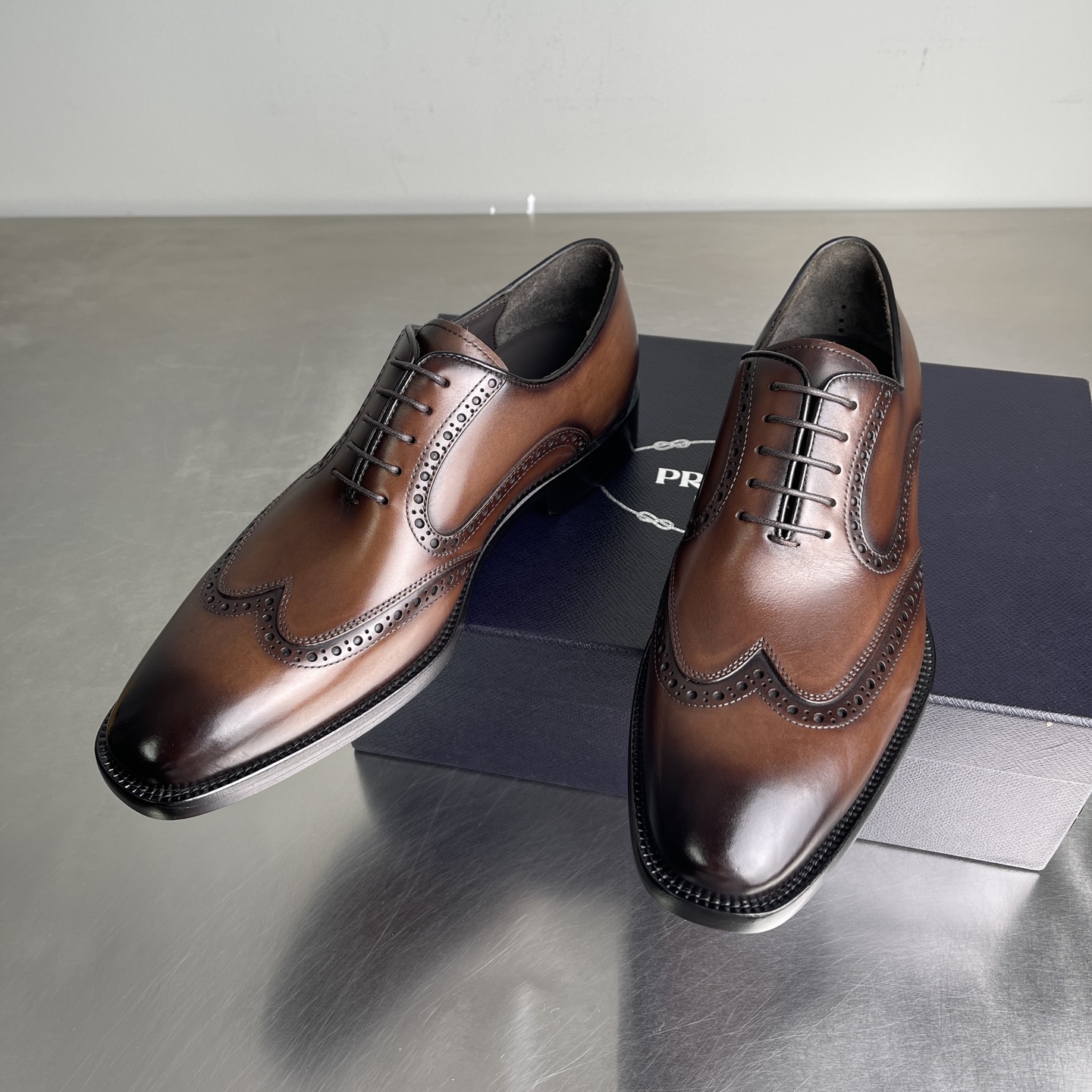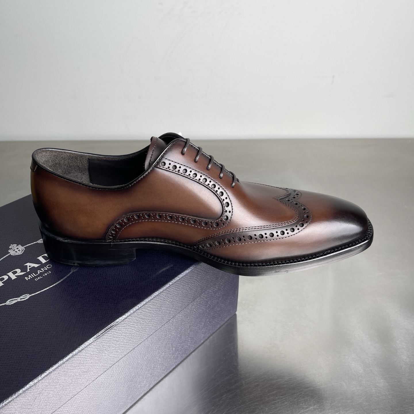 【莞产】PRADA 普拉达 布洛克雕花牛津鞋 男士正装皮鞋